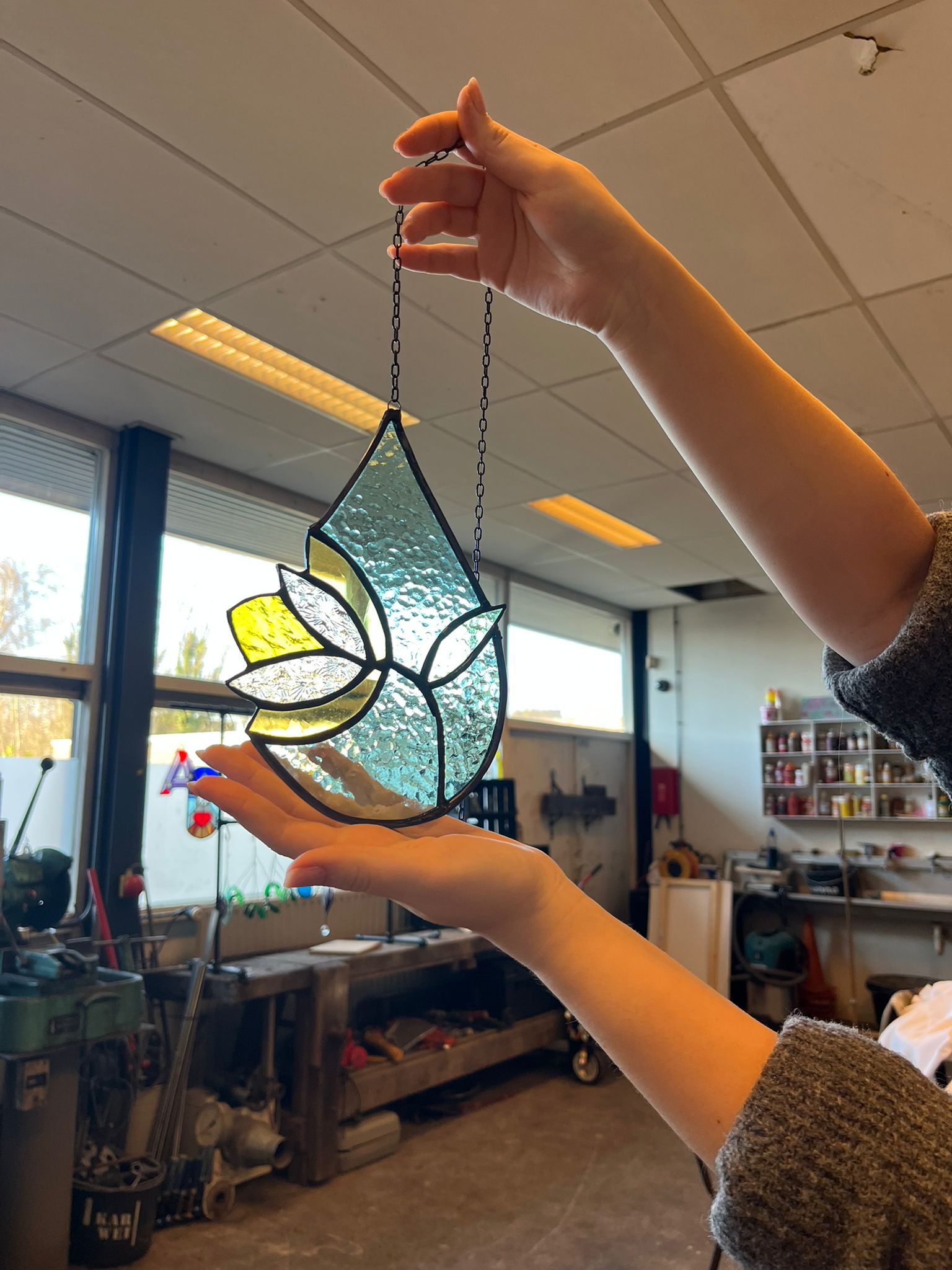 In deze workshop gaan we met glas een mooie hanger maken. We gebruiken hiervoor de tiffany of te wel koperfolie techniek.
